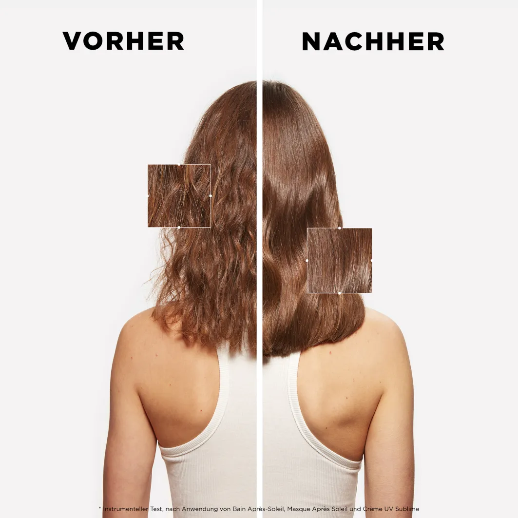 - Eine noch intensivere Pflege erreicht man nach dem Sonnenbaden mit Kérastase Masque Après-Soleil. Sie wird in das handtuchtrockene Haar einmassiert und 5 bis 10 Minuten darin belassen, bevor sie wieder ausgewaschen wird.