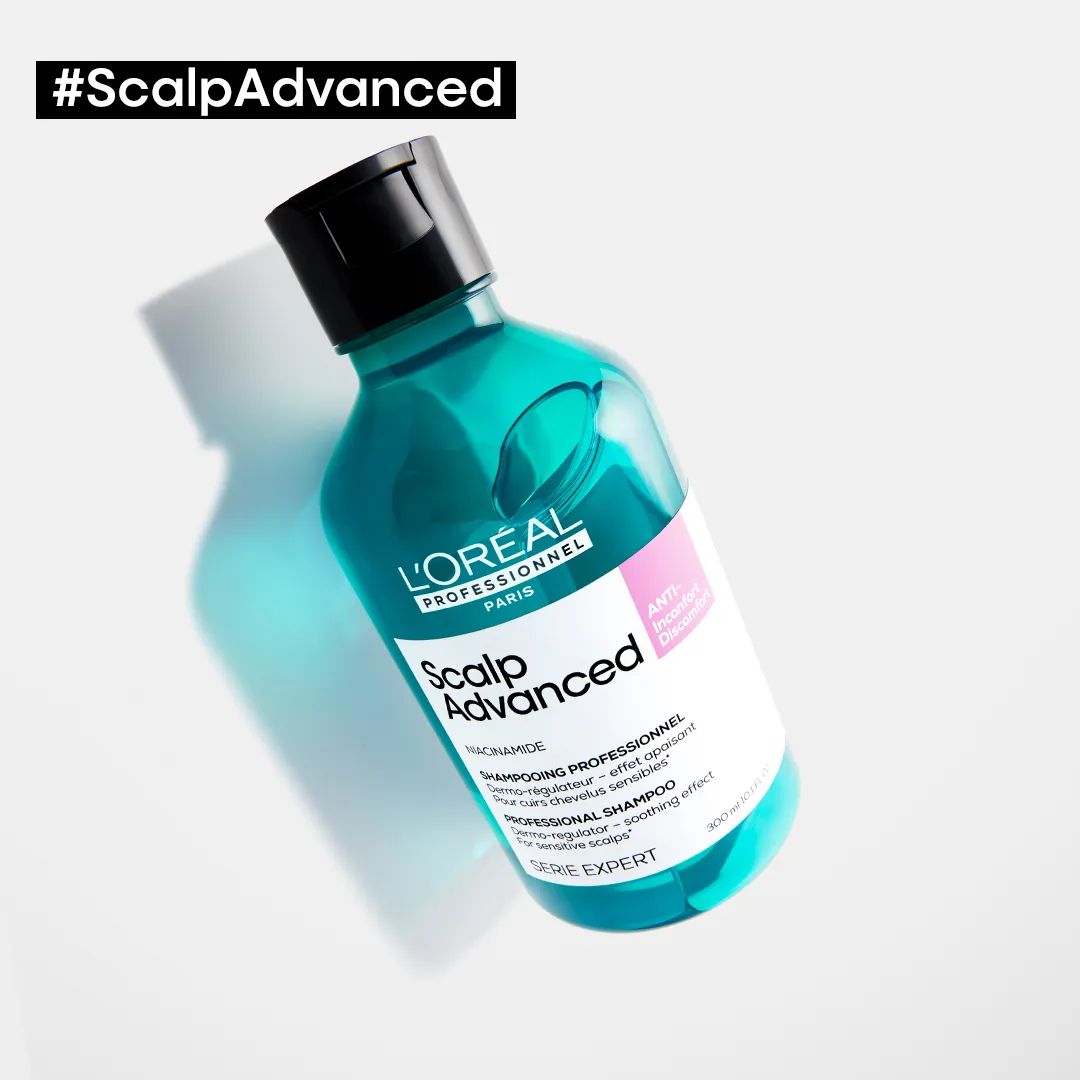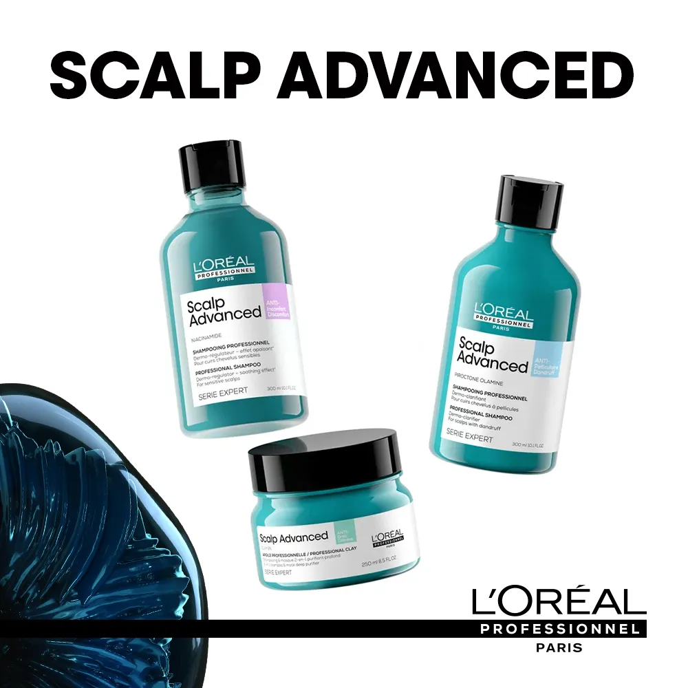 Scalp Advanced ist die Profi Linie für sensible Kopfhaut von L’Oréal Professionnel Paris. Die Produkte wurden gemeinsam mit Friseuren entwickelt und ihre Wirksamkeit von Dermatologen bestätigt. Scalp Advanced verbindet eine luxuriöse Pflege mit hocheffektiven Wirkstoffen für eine gesunde und ausgeglichene Kopfhaut.