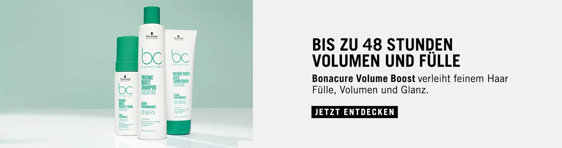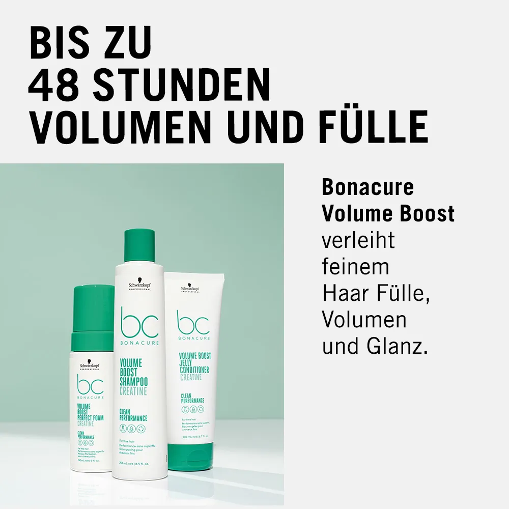 Feines und kraftloses Haar erhält mit dem Schwarzkopf BC Volume Boost Set fühl- und sichtbar mehr Volumen, das bis zu 48 Stunden anhält. Die drei Produkte holen das Maximum aus schlaffem Haar heraus. Inhalt von Schwarzkopf BC Volume Boost Set Schwarzkopf BC Volume Boost Shampoo 250 ml Schwarzkopf BC Volume Boost Jelly Conditioner 200 ml Schwarzkopf BC Volume Boost Perfect Foam 150 ml Ergebnisse mit dem Schwarzkopf BC Volume Boost Set mehr Volumen vom Ansatz bis zur Spitze volleres Haargefühl Griffigkeit Elastizität Glanz