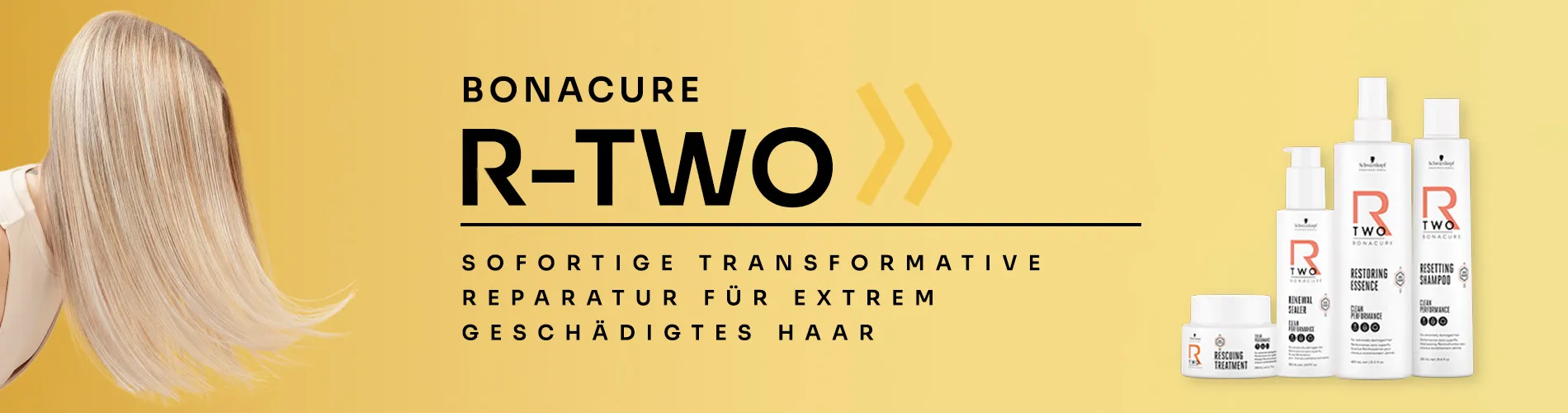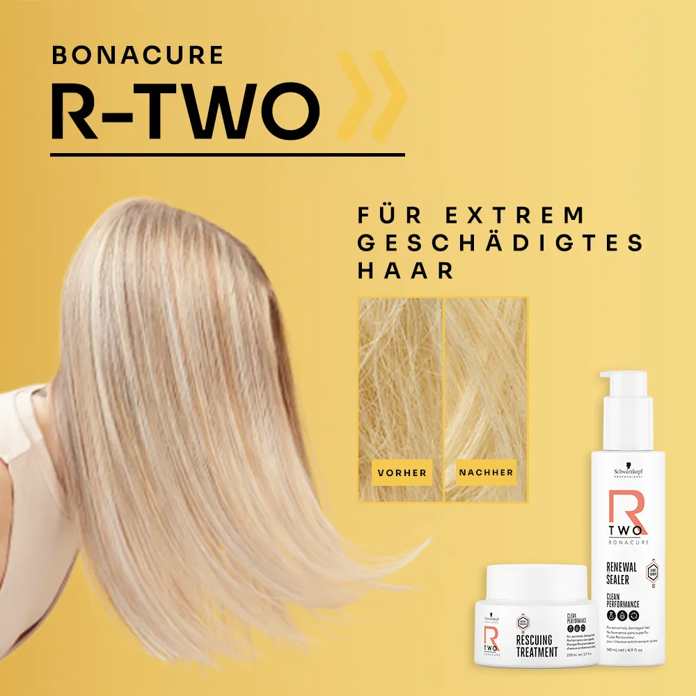 Schwarzkopf Professional Bonacure R-TWO ist die Linie für extrem geschädigtes und überstrapaziertes Haar. Sie sorgt für sofortige Tiefenreparatur, neue Faserverbindungen im Haar und gesundes, kräftiges und widerstandsfähiges Haar.